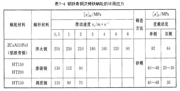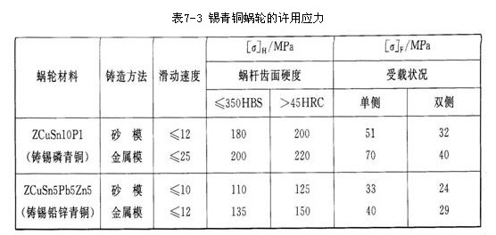 錫青銅:減摩性、耐磨性好,抗膠合能力強,但價格高,用于相對滑動速度vs≤25m/s的高速重要蝸桿傳動中;