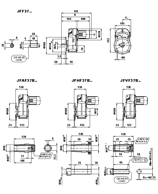 外形安裝尺寸(F37、FA37B、FH37B、FV37B、FF37、FAF37B、FHF37B、FVF37B、F..37/G、FA37、FH37、FV37、FAZ37、FHZ37、HVZ37)
