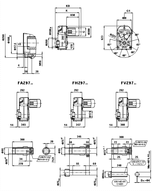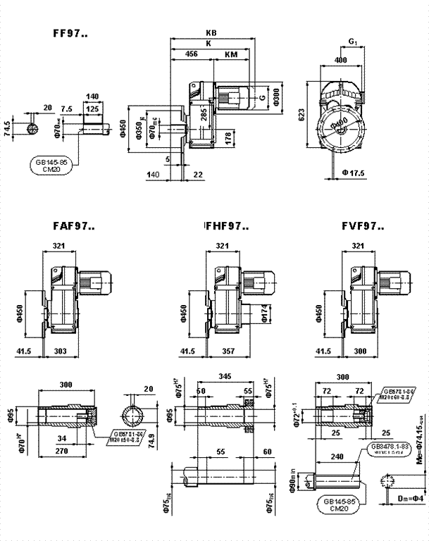 外形安裝尺寸(F97、FA97B、FH97B、FV97B、FF97、FAF97B、FHF97B、FVF97B、F..97/G、FA97、FH97、FV97、FAZ97、FHZ97、HVZ97)