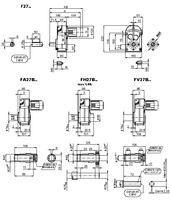 外形安裝尺寸(F27、FA27B、FH27B、FV27B、FF27、FAF27B、FHF27B、FVF27B、F..27/G、FA27、FH27、FV27、FAZ27、FHZ27、FVZ27)