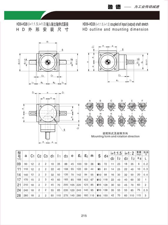 轉向器-HD螺旋錐齒輪轉向器外形尺寸圖-魯德傳動