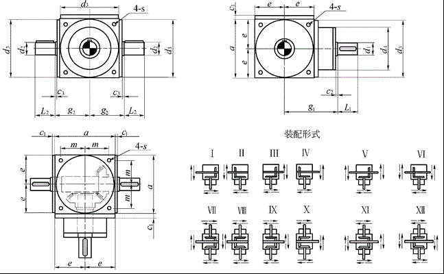 SPV型轉向箱的外形和尺寸(輸出軸加強型):