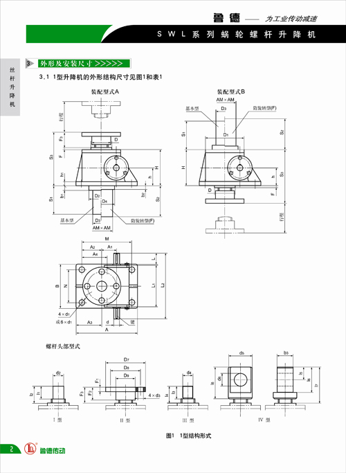 1型結構型式的兩種裝配型式:A型:螺桿工作端在上;B型:螺桿工作端在下。