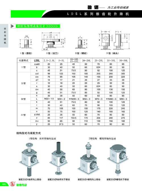 蝸輪絲桿升降機相比較其效率_,使用壽命更長,并具有體積小、重量輕、結構緊湊、安裝方便、使用靈活、可靠型高等諸多優點。_輸入轉速500r/min,_提升速度2.7m/min,能按_程序準確的控制調整提升或推進的高度,承載能力為2.5T~50T。壓力負荷較低時允許_的提升高度,提升不同負荷是允許的扭矩、功率、轉速不同,不同啟動持續率的_功率不同、輸入軸伸處允許承受_的徑向力,允許裝齒輪,鏈輪或皮帶輪。